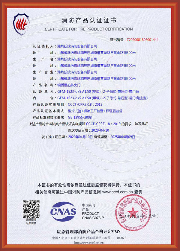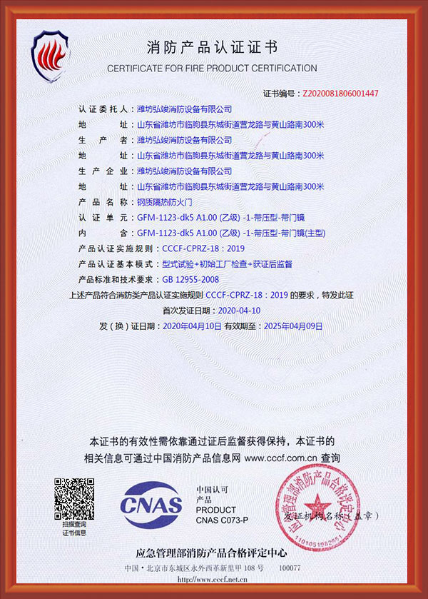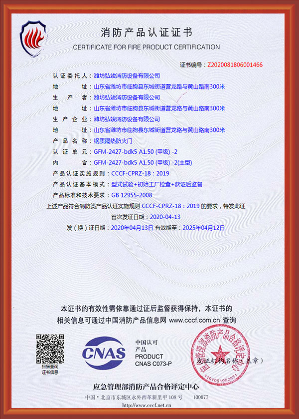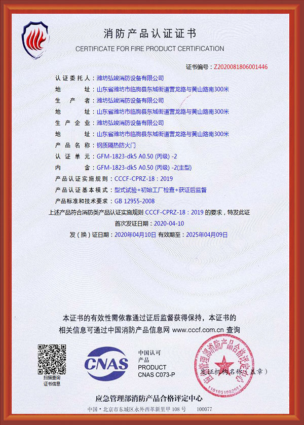 濰坊弘竣消防設(shè)備有限公司是一家防火門(mén)、鋼質(zhì)防火門(mén)、木制防火門(mén)、防火卷簾、鋼木質(zhì)防火門(mén)、不銹鋼防火門(mén)、防火窗、耐火窗、擋煙垂壁、儲(chǔ)藏室門(mén)、防火入戶門(mén)和其它材質(zhì)防火門(mén)廠家。