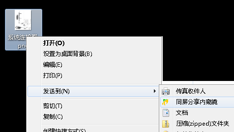 在桌面上點(diǎn)擊鼠標(biāo)右鍵,選擇“同屏共享”,